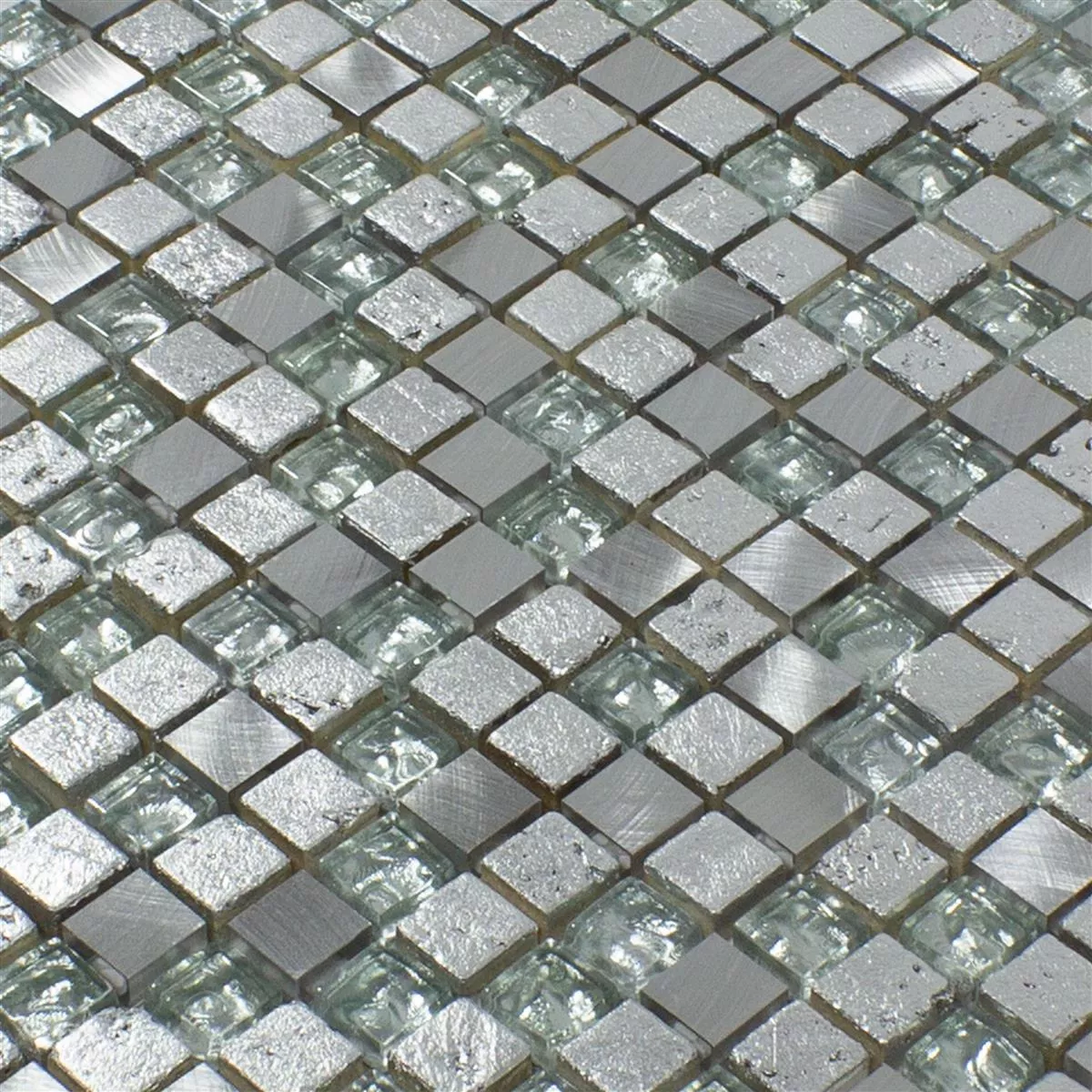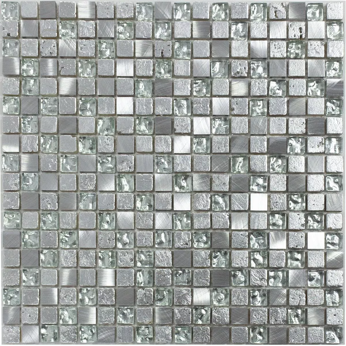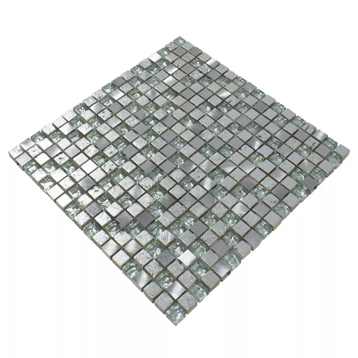 Natursten Glas Aluminium Mosaik Stilo Ljusgrå Silver
