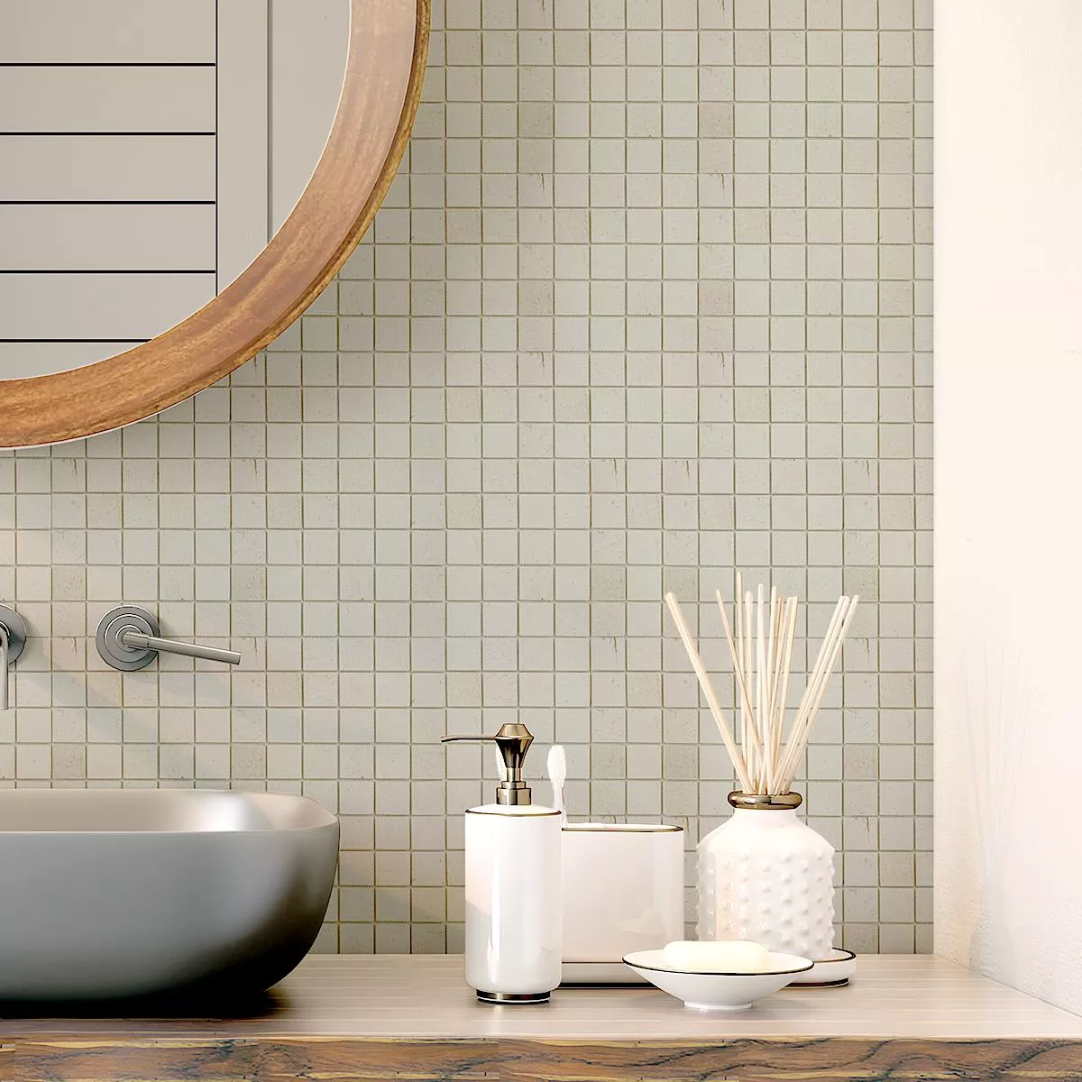 Varje kakel och varje mosaik har olika krav på trimning, läggning och bearbetning på grund av individuella materialegenskaper och användningsförhållanden. Fråga en lokal expert för korrekt och säker läggning av dina mosaiker eller kakel. Vi ansvarar inte för oprofessionell användning och felaktigt utförande av konstruktionsmaterial.