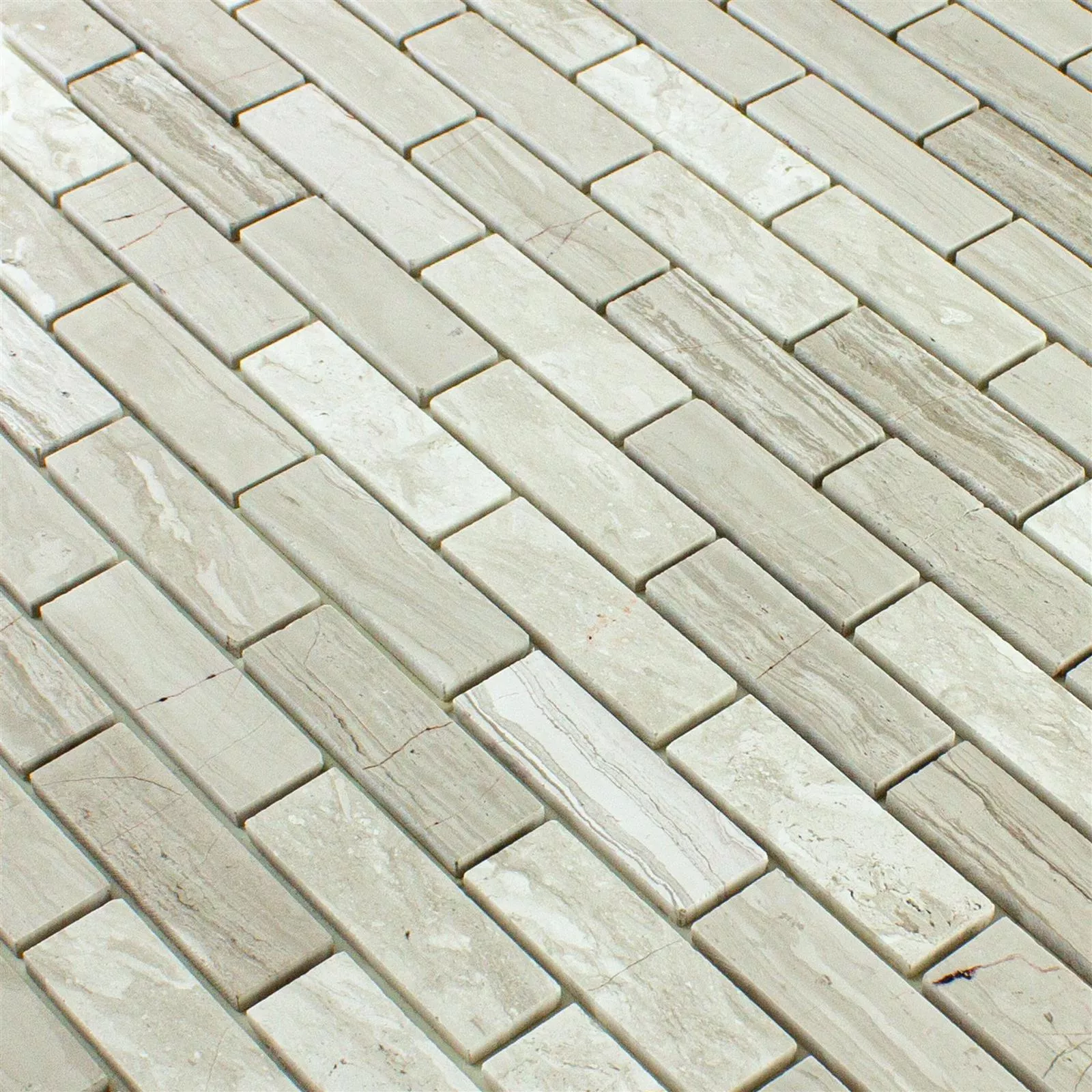 Naturstenen som används, travertin, är känd för sin skönhet och hållbarhet. Varje sten är 15x48mm stor och har en matt finish som ger den ett mjukt och behagligt utseende. Naturstenens subtila struktur smälter sömlöst in i helhetsbilden och skapar en harmonisk atmosfär i ditt rum.
