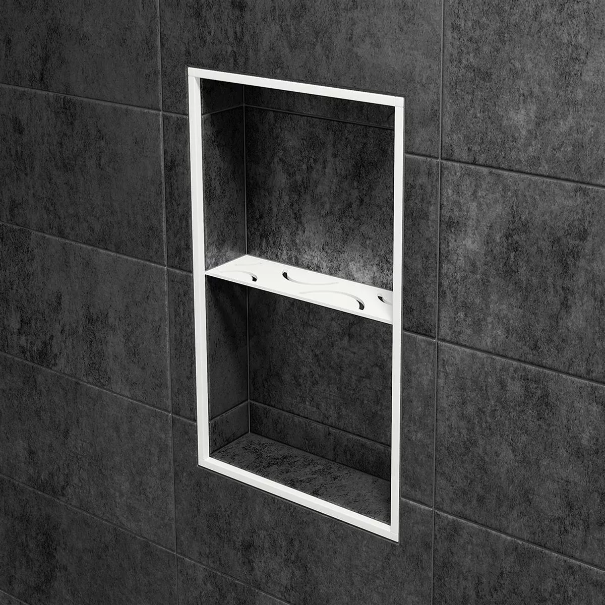 Schlüter-SHELF-N-S1 Vit Rektangulär nischvägghylla Med Schlüter-SHELF-N-S1 kan du förse den prefabricerade Schlüter-KERDI-BOARD-nischen med en noggrant passande hylla vid kakelläggning. Det är inte allt: du har också maximal flexibilitet när det gäller material och design. Den högkvalitativa nischvägghyllan är gjord av antingen borstat rostfritt stål eller texturerad aluminium.