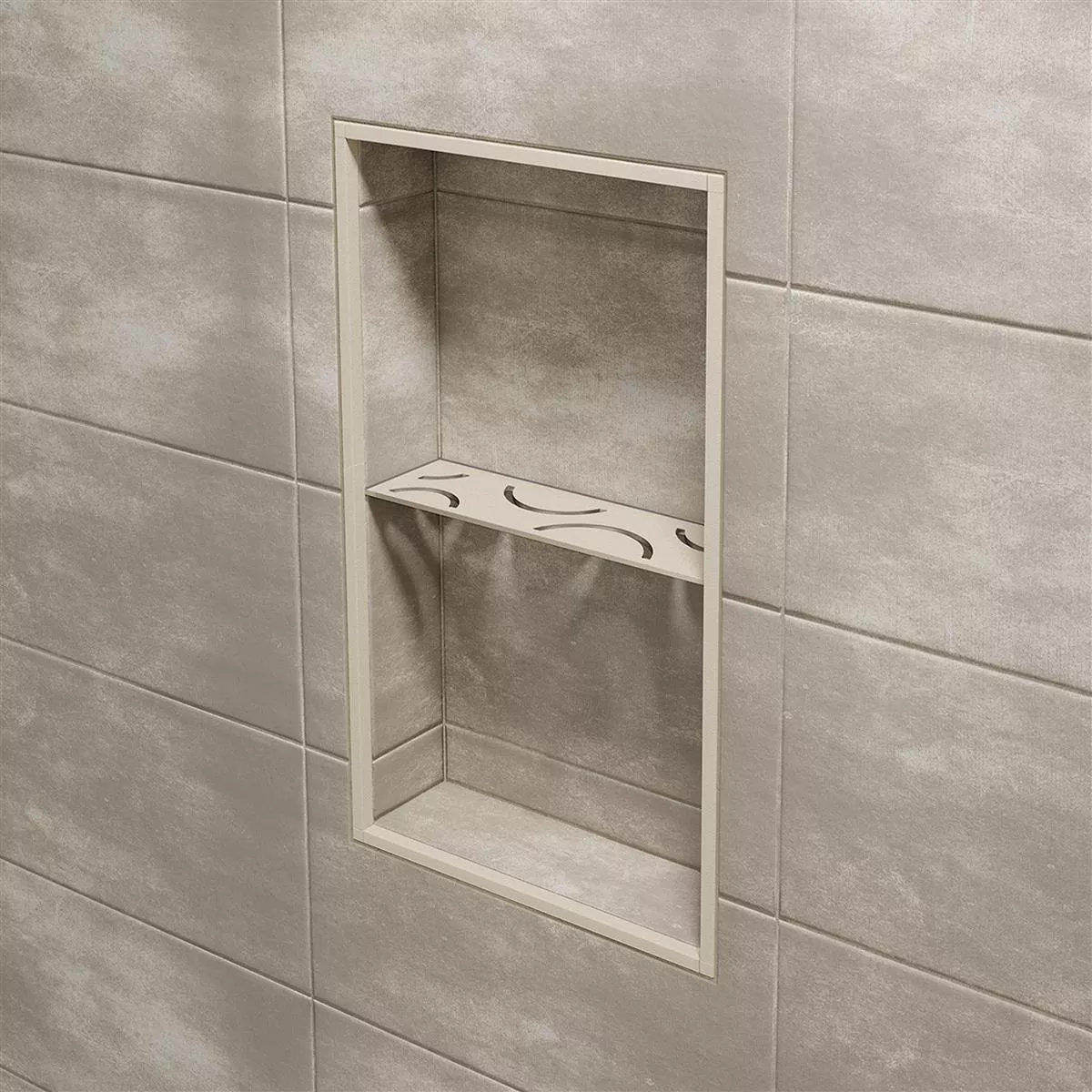 Schlüter-SHELF-N-S1 Elfenben Rektangulär nischvägghylla Med Schlüter-SHELF-N-S1 kan du förse den prefabricerade Schlüter-KERDI-BOARD-nischen med en exakt passande hylla vid kakelläggning. Det är inte allt: du har också maximal flexibilitet när det gäller material och design. Den högkvalitativa nischvägghyllan är gjord av antingen borstat rostfritt stål eller texturerad aluminium.