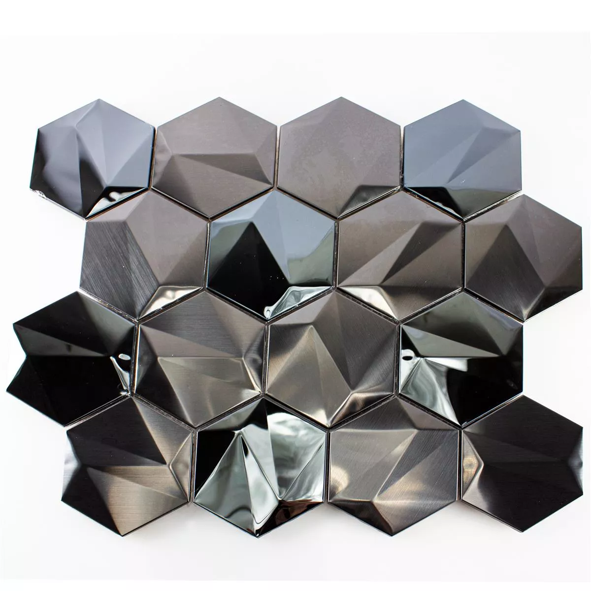 Rostfritt Stål Mosaik Durango Hexagon 3D Brun