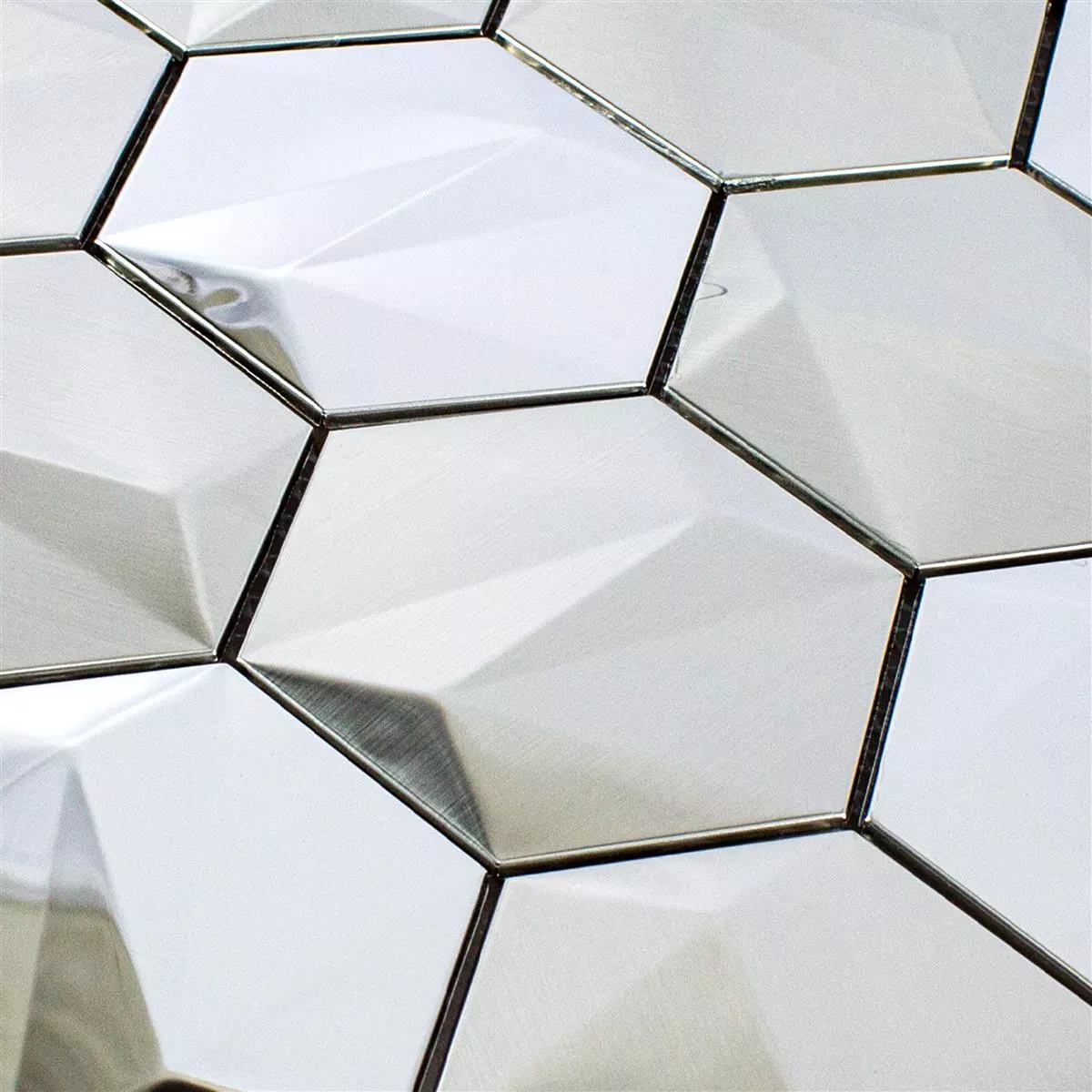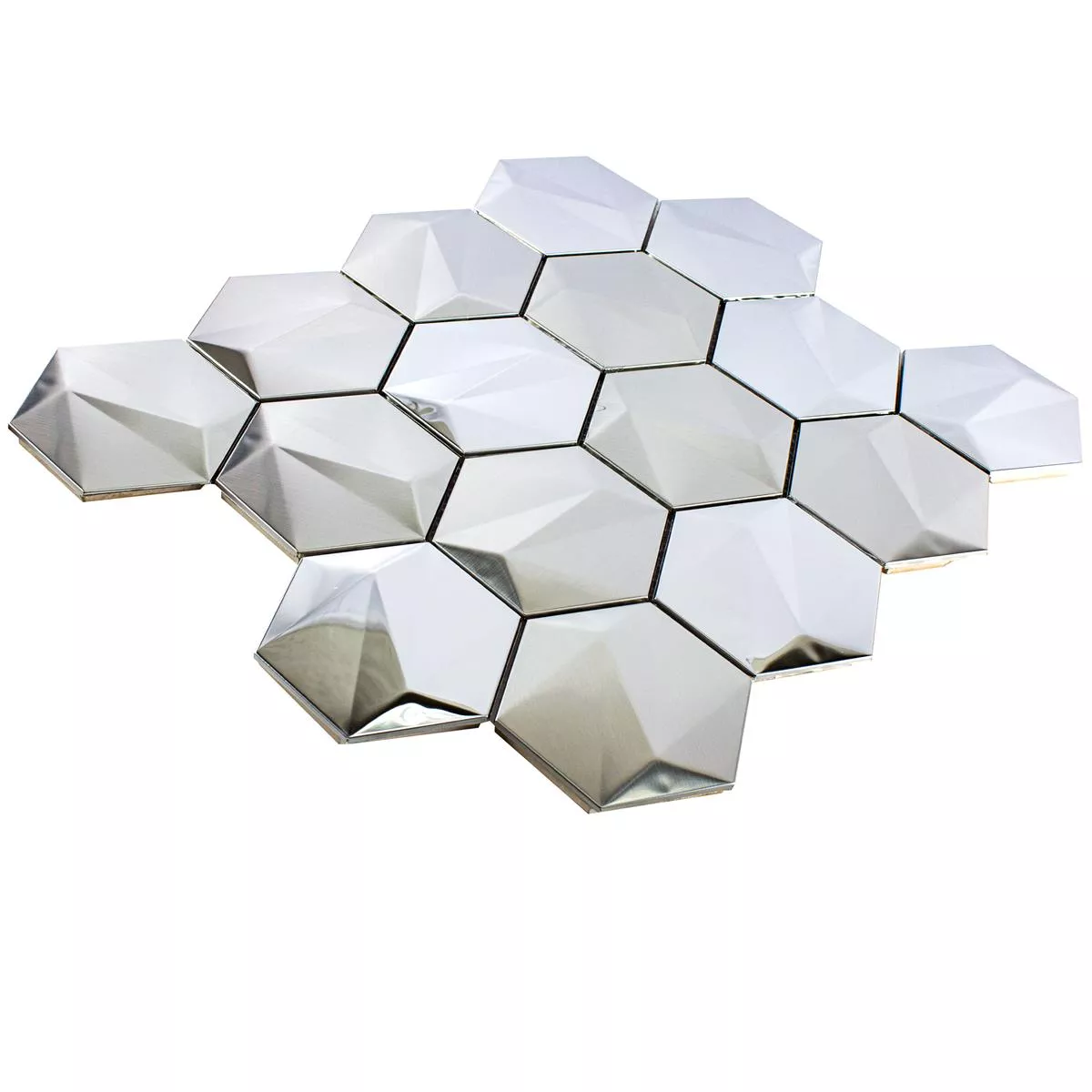 Rostfritt Stål Mosaik Durango Hexagon 3D Silver