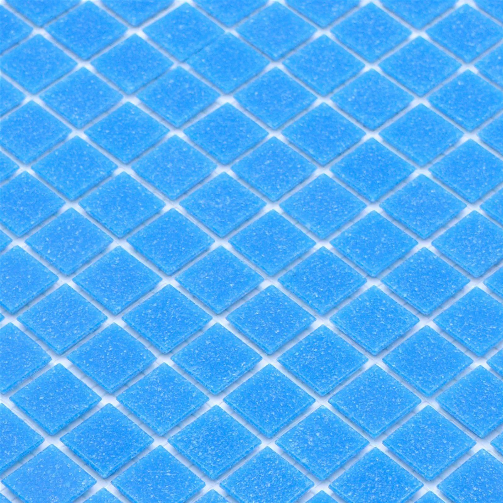 Mosaikplattor för inomhus- eller utomhuspoolen. Papperslimning gör skärningen lättare för hantverkaren. De kan snabbt rengöras med hjälp av glasytan.