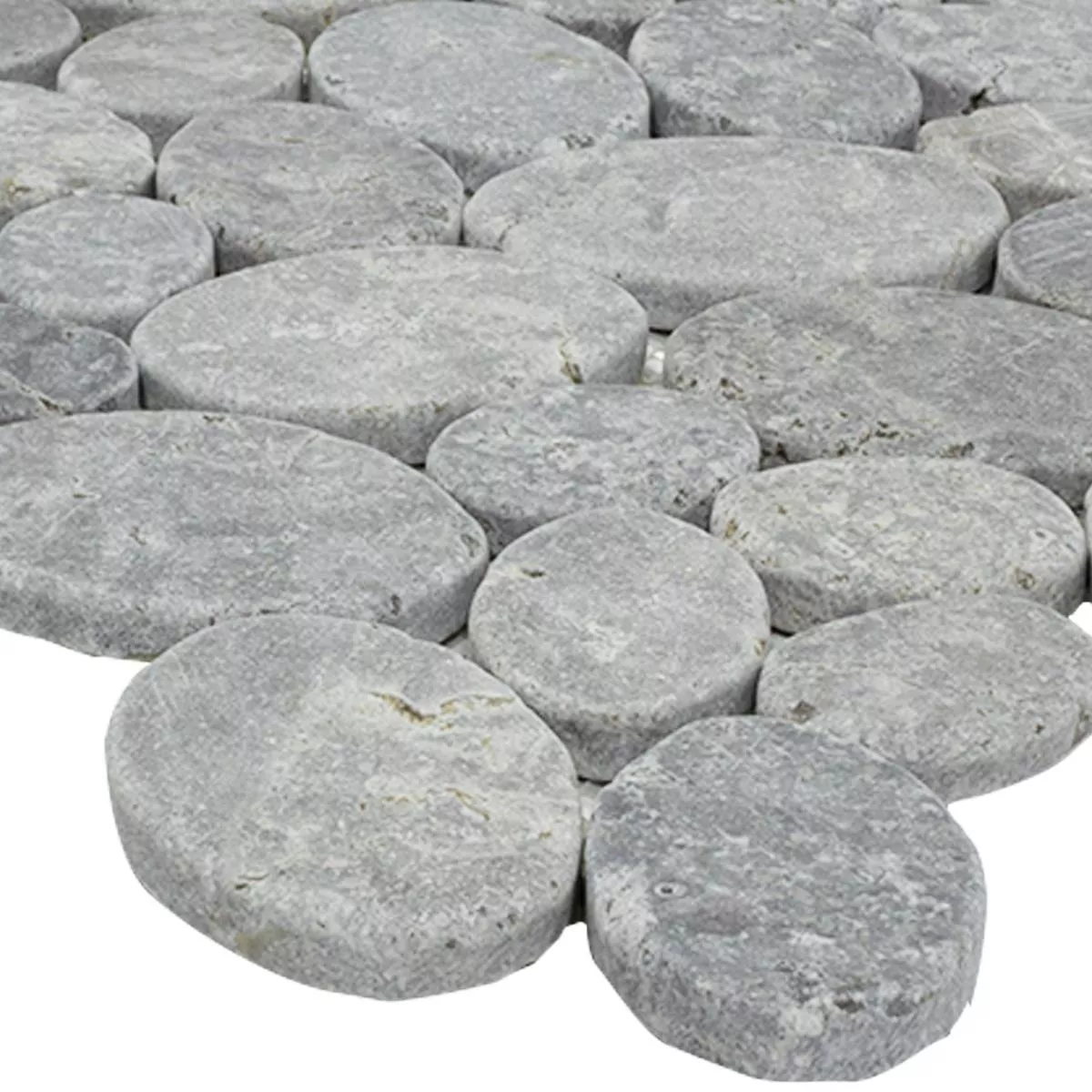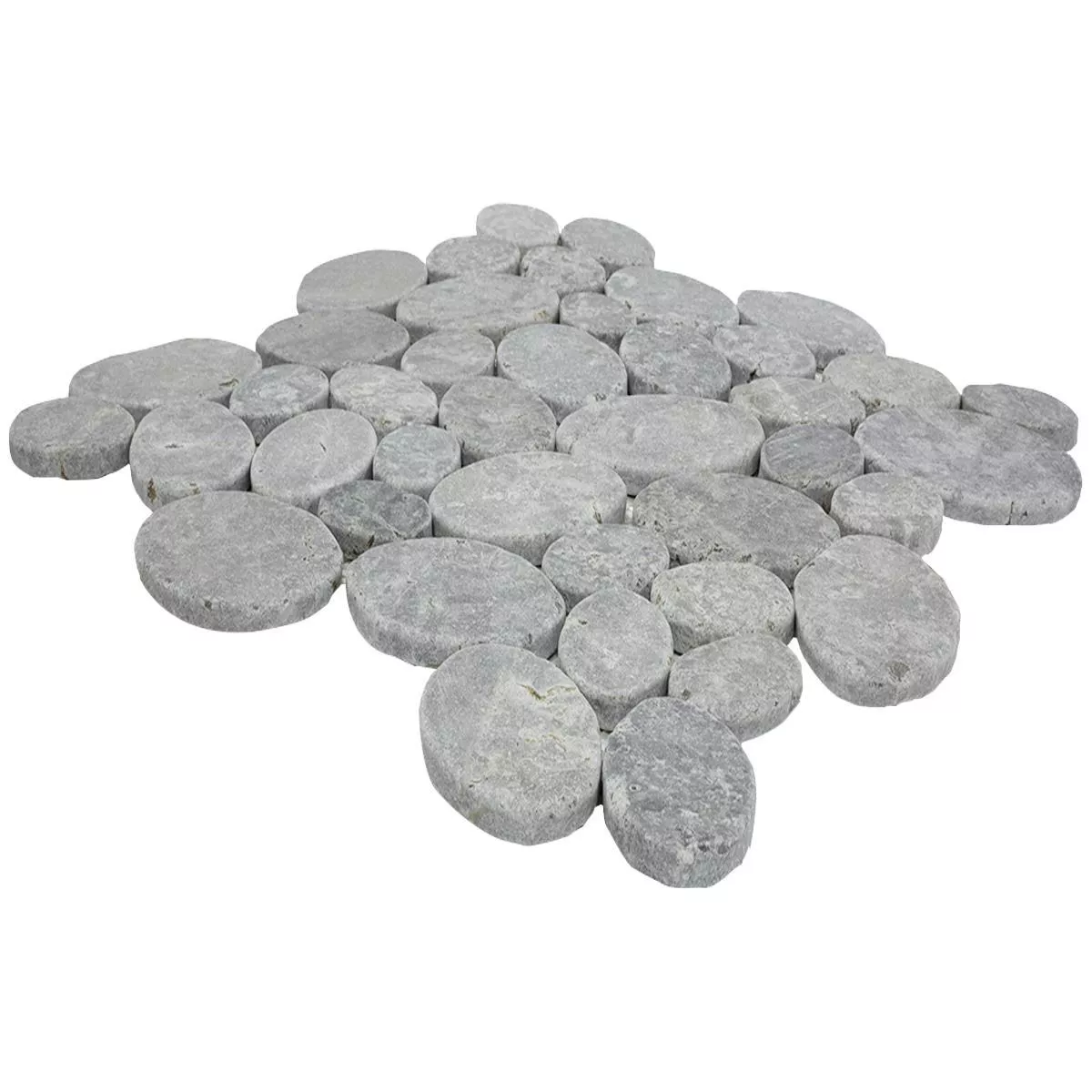 Med stenstorlekar på 30 till 70 mm och en tjocklek på 10 mm säkerställer plattorna ett naturligt, harmoniskt utseende. Varje matta mäter 30,5x30,5 cm och täcker en yta på 0,093 m². Det varierande formatet på småstenen skapar ett unikt, organiskt mönster som är särskilt tilltalande.