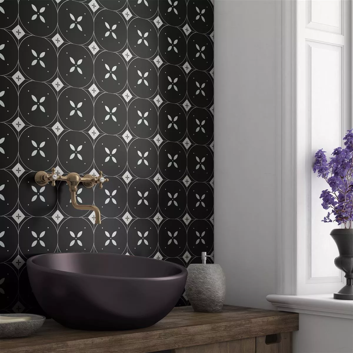 Stengods Plattor Genexia Svart Vit Decor 2 Oktogon 20x20cm