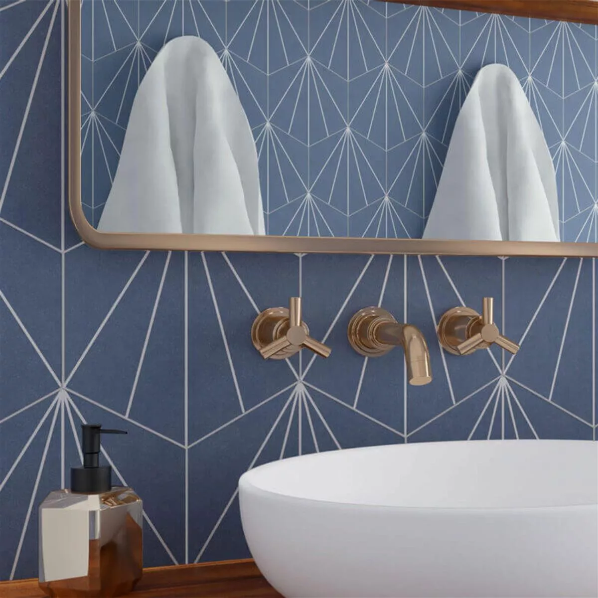 Upptäck den moderna elegansen och den innovativa designen hos porslinsstengodsplattorna Millennium Hexagon 3D Look Blue. Dessa unika hexagonplattor ger en fläkt av frisk luft i dina vardagsrum med sin iögonfallande 3D-look och rika blå färg.