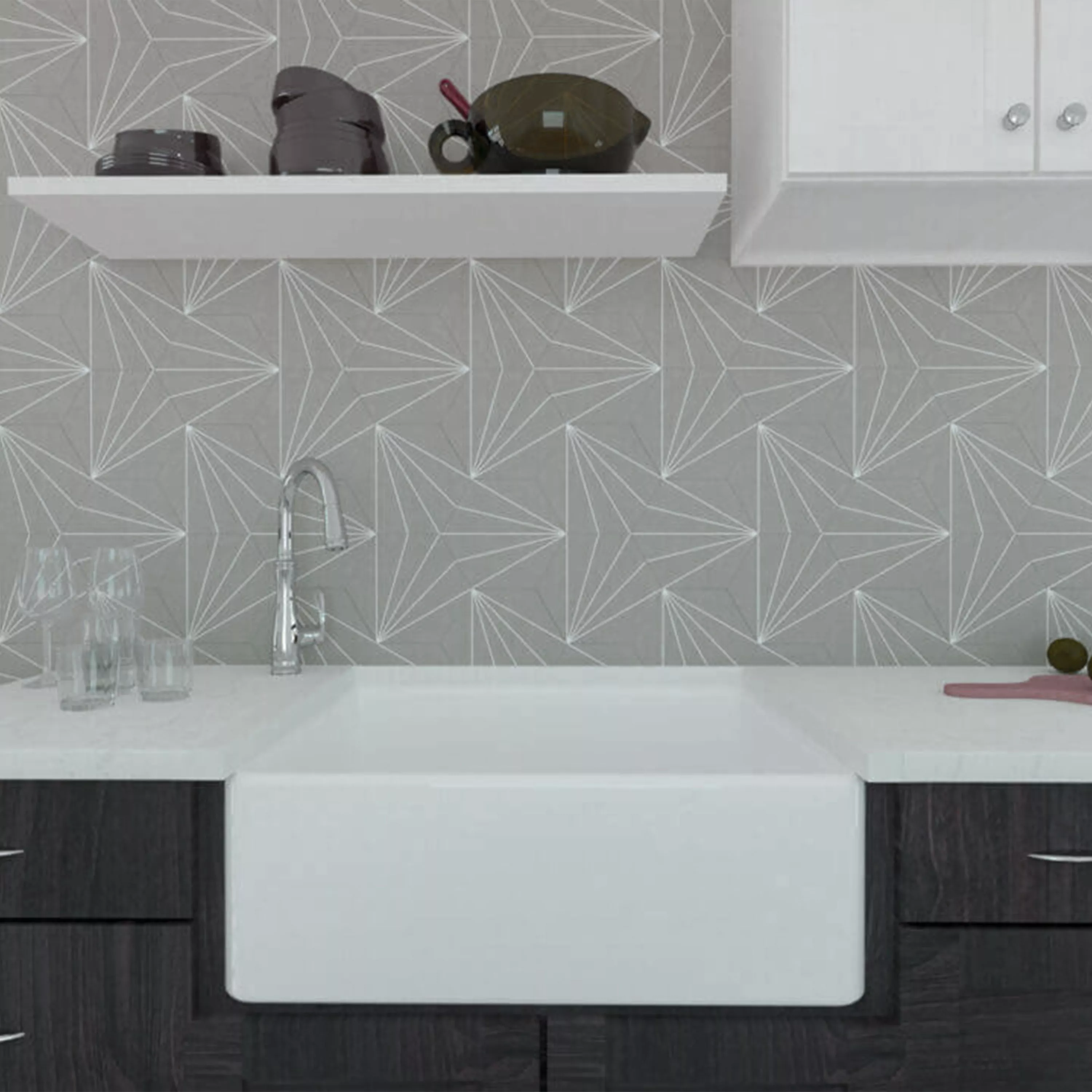 Millennium Hexagon-plattorna i 3D-look är inte bara en visuell höjdpunkt, utan också ett praktiskt val för våtutrymmen och andra rum där funktionalitet och design är lika viktigt.