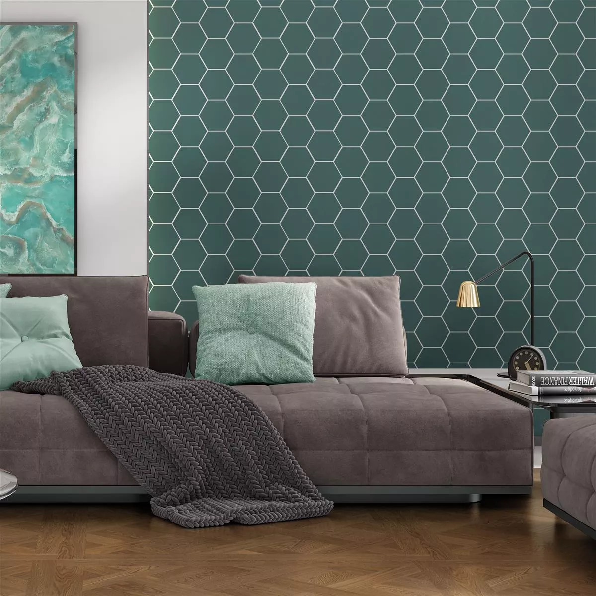Stengods Plattor Modena Hexagon Uni Grön Hexagon