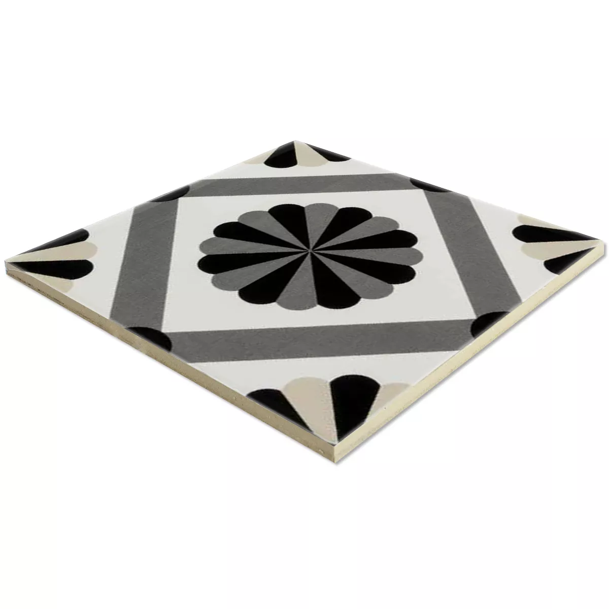 Den tidlösa skönheten i våra Ornamenti Arezzo-plattor i porslin i stengods. Dessa fyrkantiga vägg- och golvplattor i måtten 13,9x13,9cm ger din interiör en elegant blommig look i grått, beige och vitt. Den glaserade, matta ytan och en tjocklek på 8 mm erbjuder inte bara estetik utan också hållbarhet.