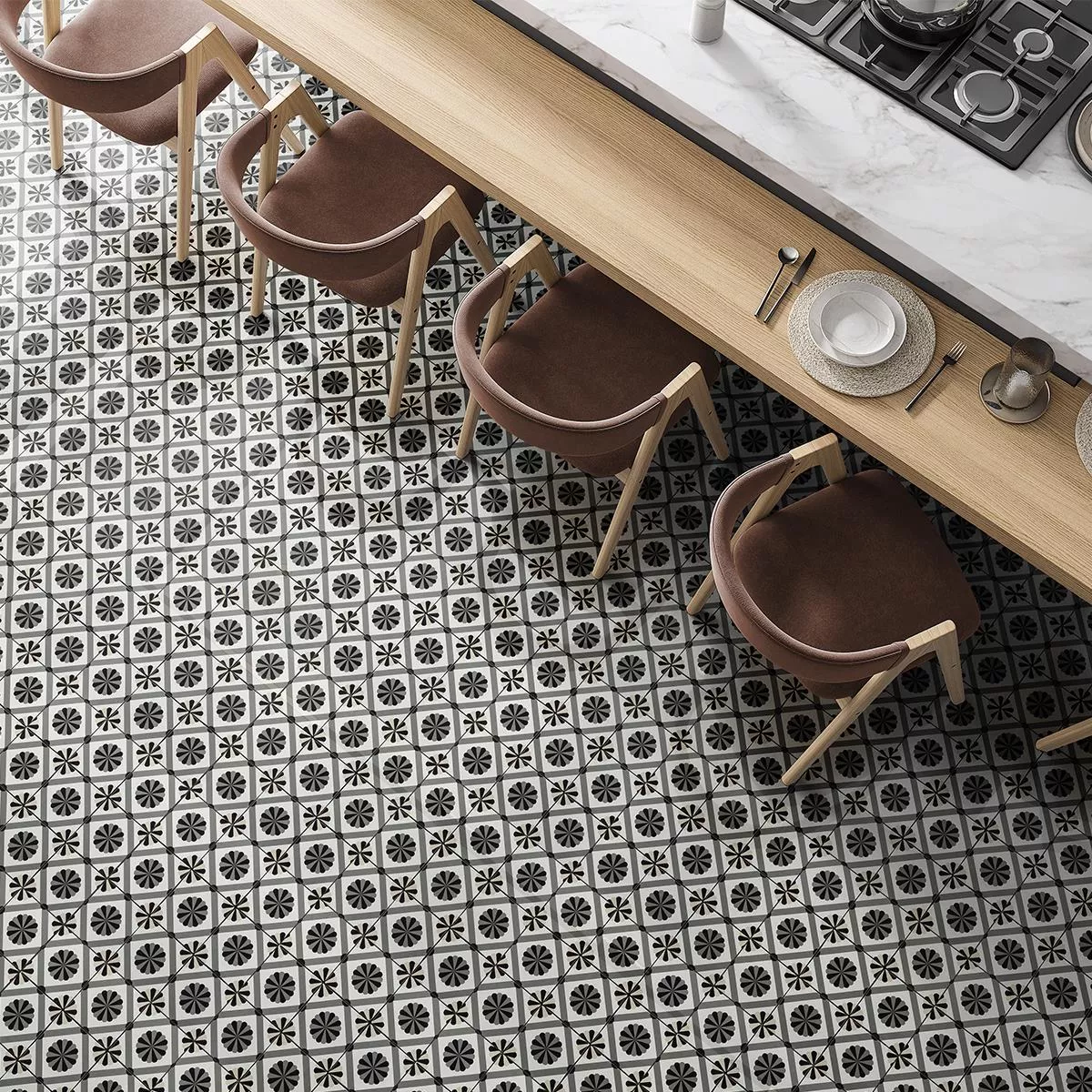 Ett paket innehåller 26 plattor och täcker en yta på 0,50 m², med en totalvikt på 18,7 kg. Perfekt för kök, badrum och vardagsrum, de är även lämpliga för våtutrymmen. Dessa plattor är till och med lämpliga för golvvärme för att göra ditt rum stilrent och bekvämt.