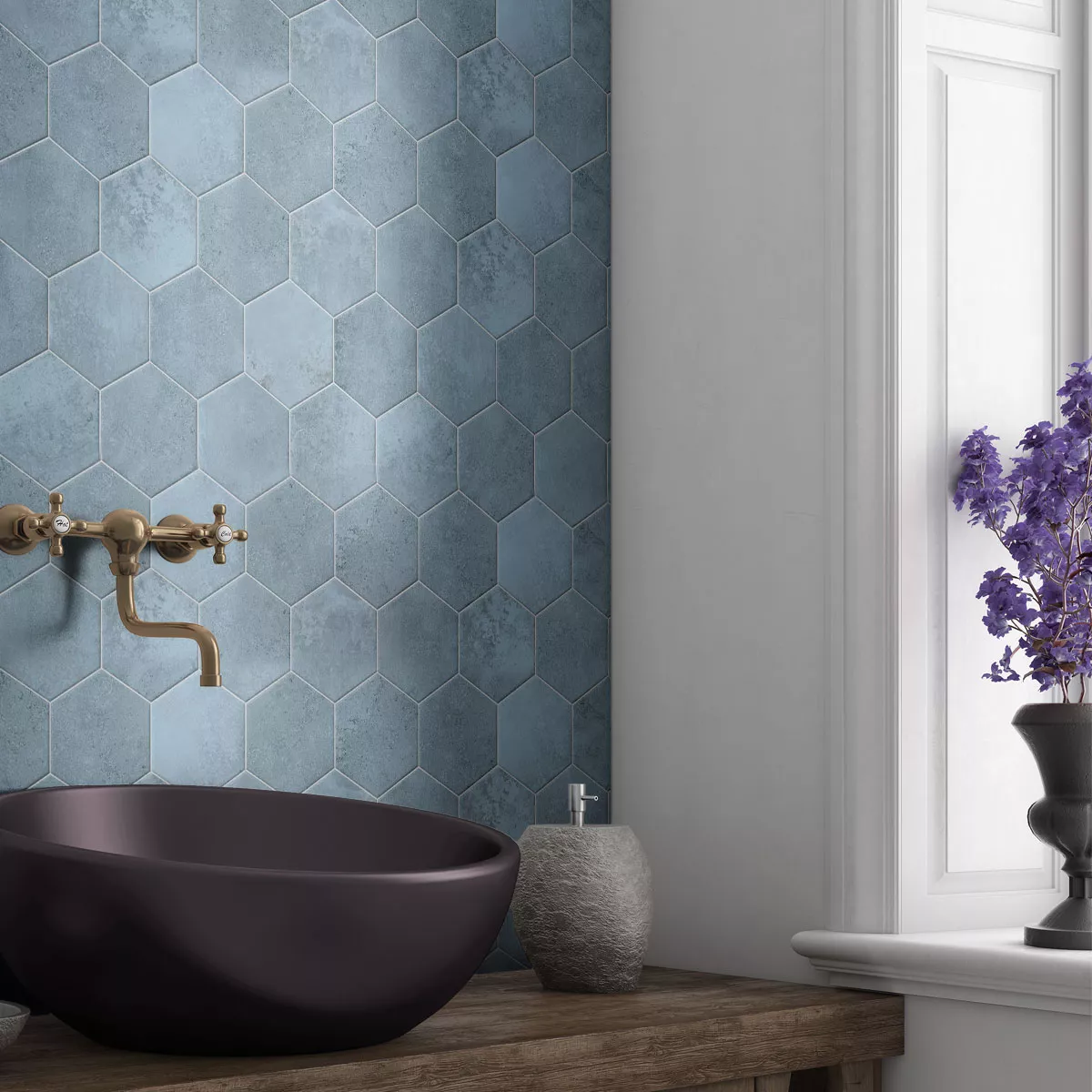 Stengods Simbassäng Plattor Palencia Blå Hexagon