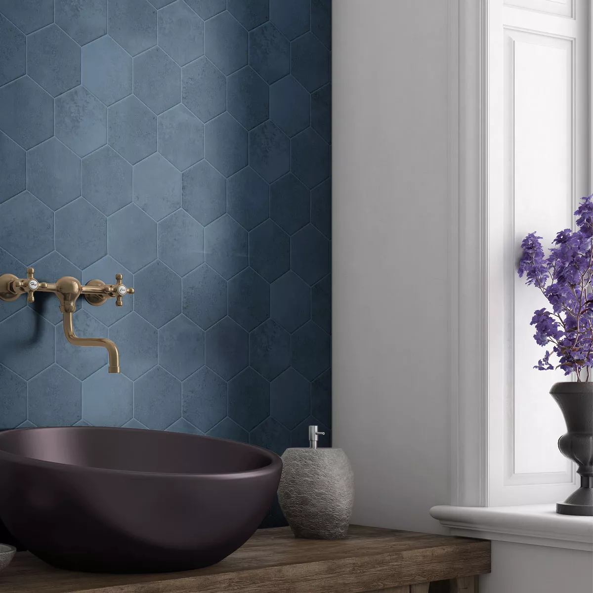 Stengods Simbassäng Plattor Palencia Mörkblå Hexagon