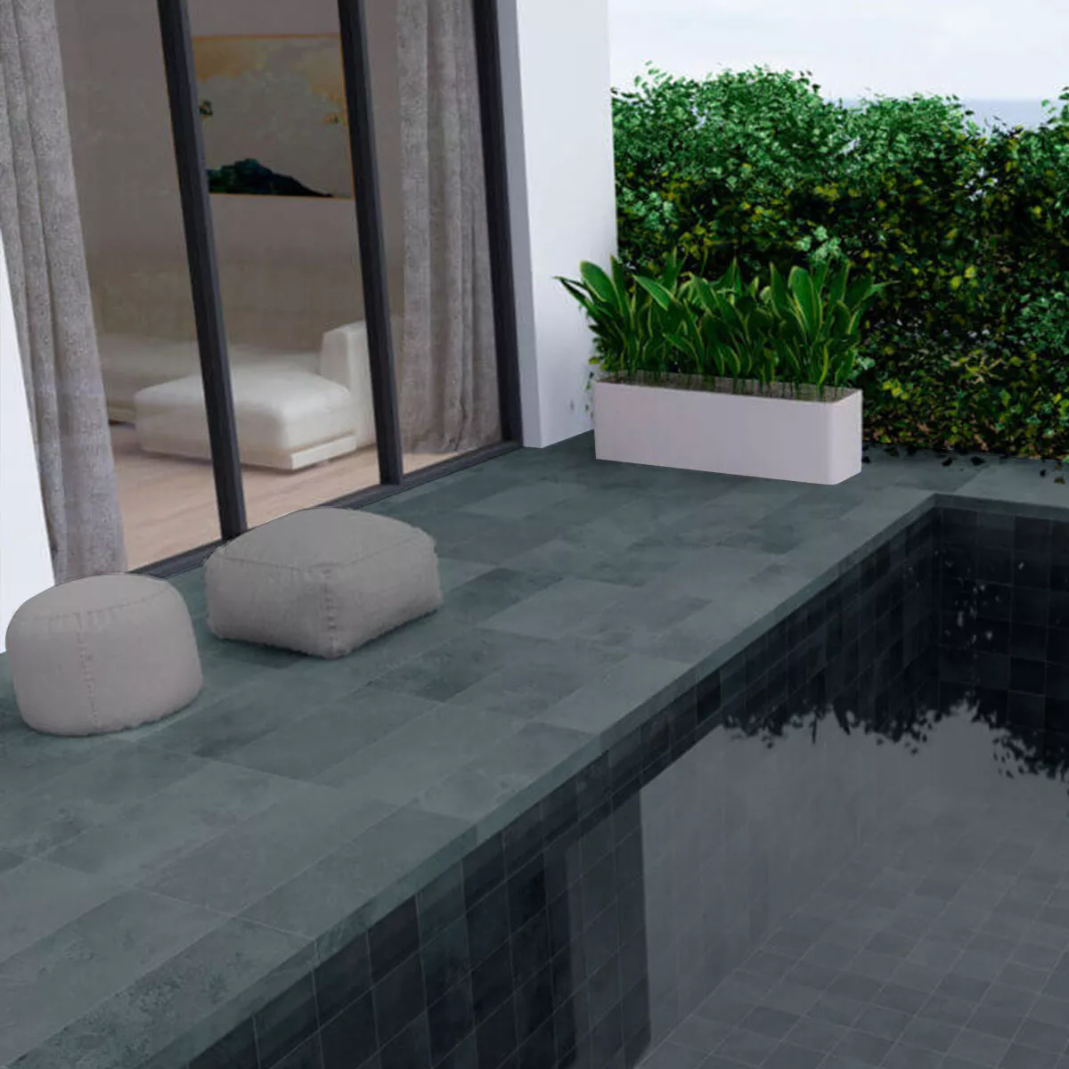Lägg till en touch av lyx till din pool, pool och andra områden med våra högkvalitativa "Palencia Turquoise" porslinsplattor - en perfekt kombination av skönhet och funktionalitet.