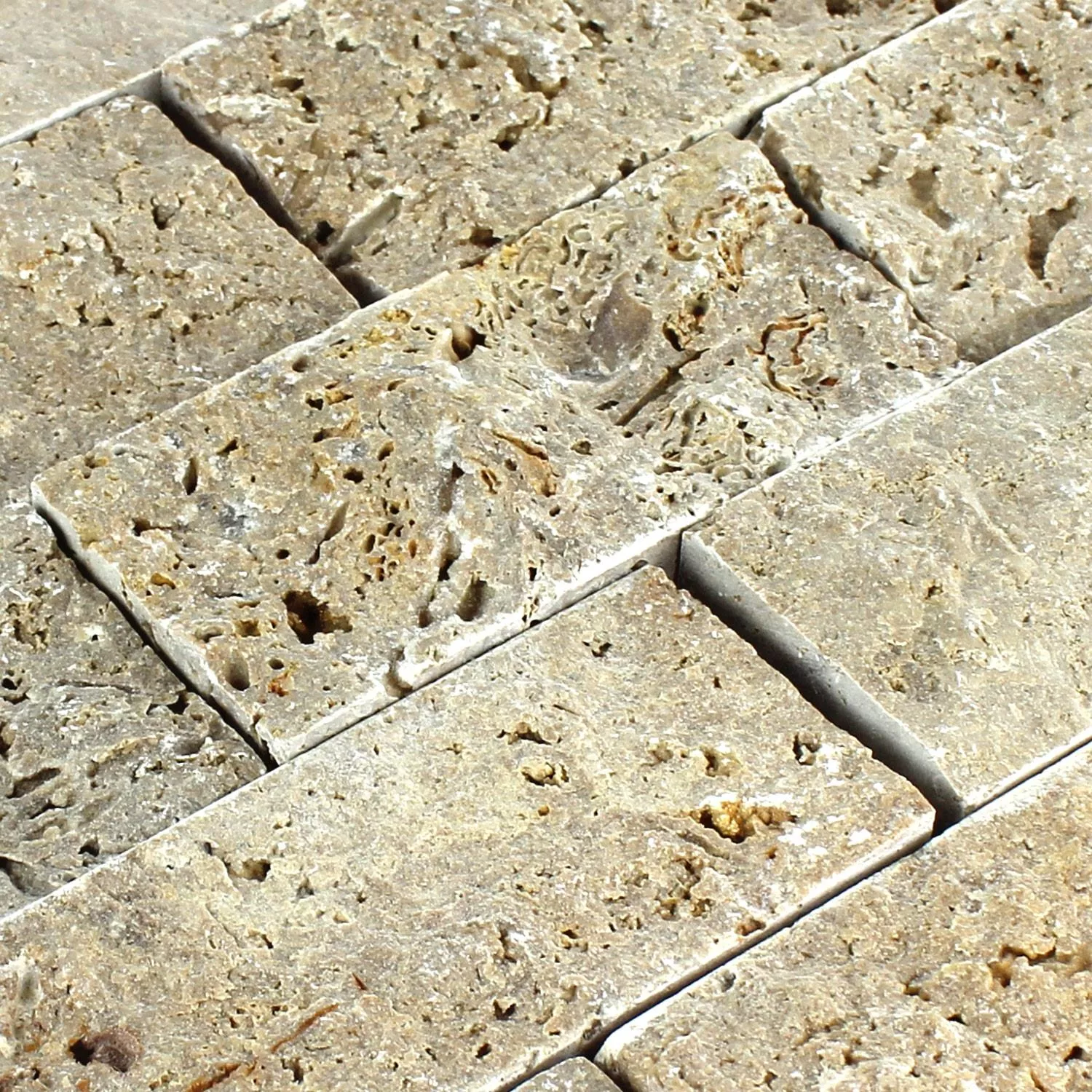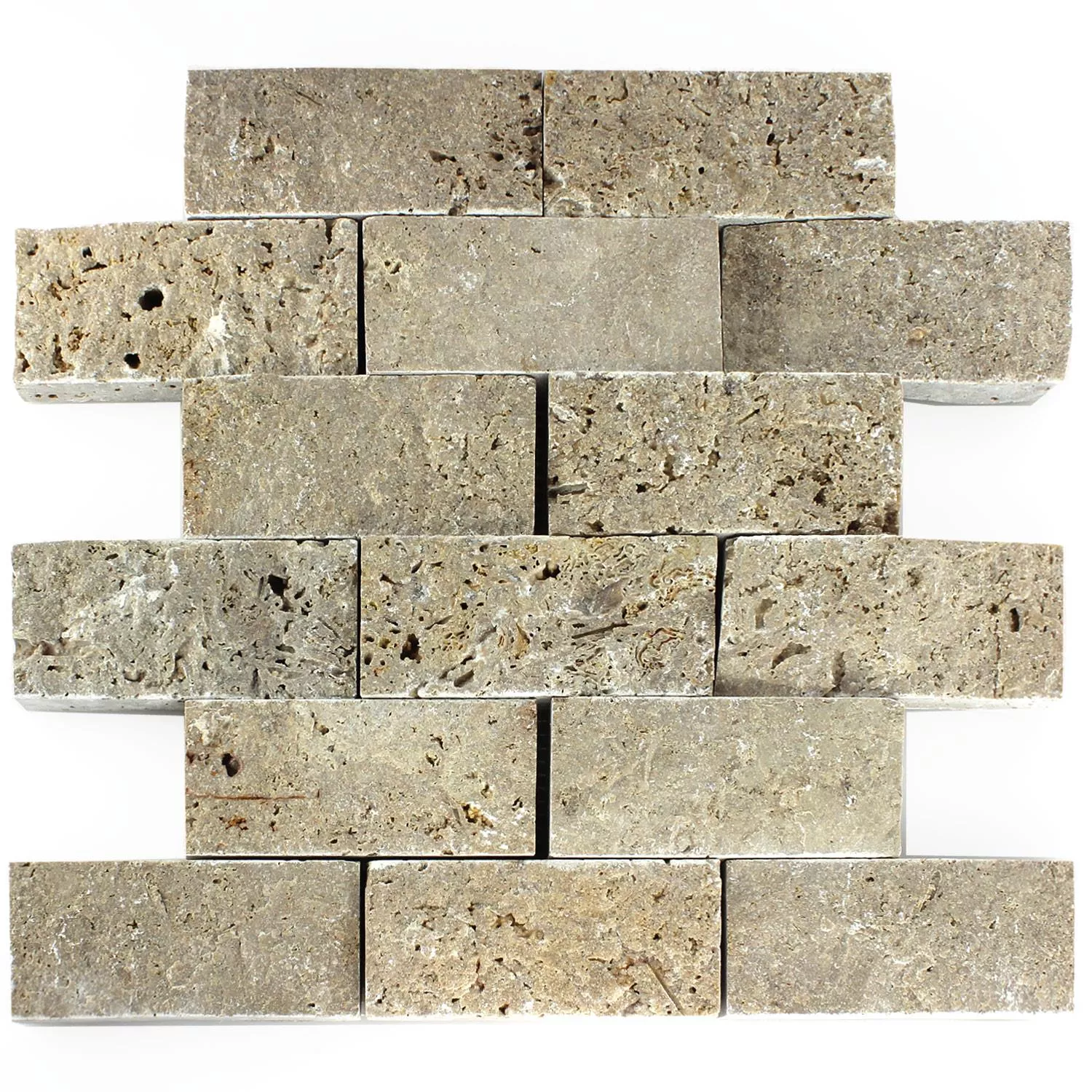 Mosaikplattor är på modet eftersom de frammanar en mysig atmosfär i varje rum med sina många naturliga stenplattor. Sumba Noce Brick-modellen är gjord av högkvalitativ travertin i det nuvarande 3D-utseendet. Därför ser alla väggar som är täckta med dessa robusta mosaikplattor också visuellt tilltalande ut. De ljusbeigefärgade mosaikplattorna Sumba Brick med de mörka fläckarna är bearbetade med en matt tumlad yta. Denna yta framhäver det naturliga materialet i dessa plattor.