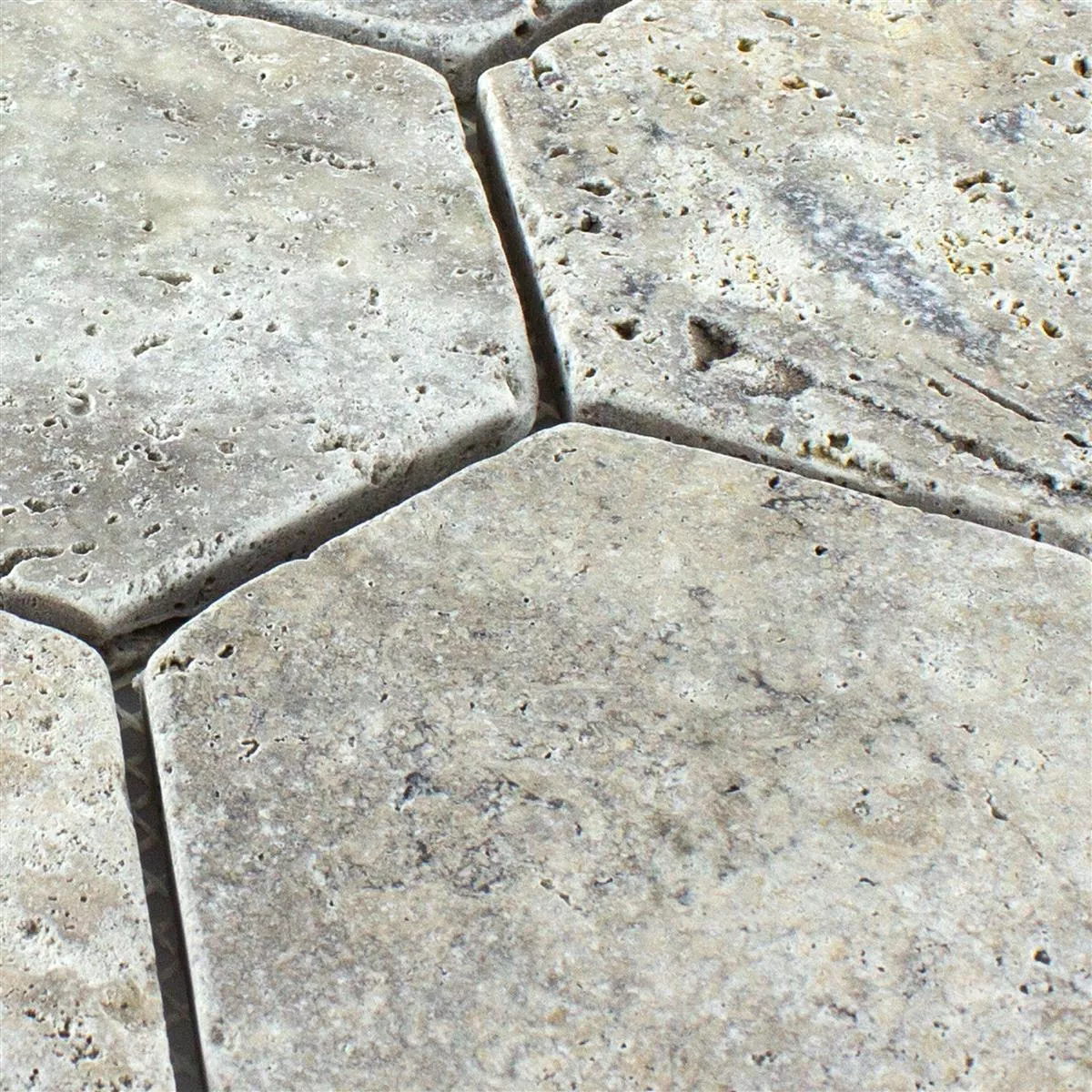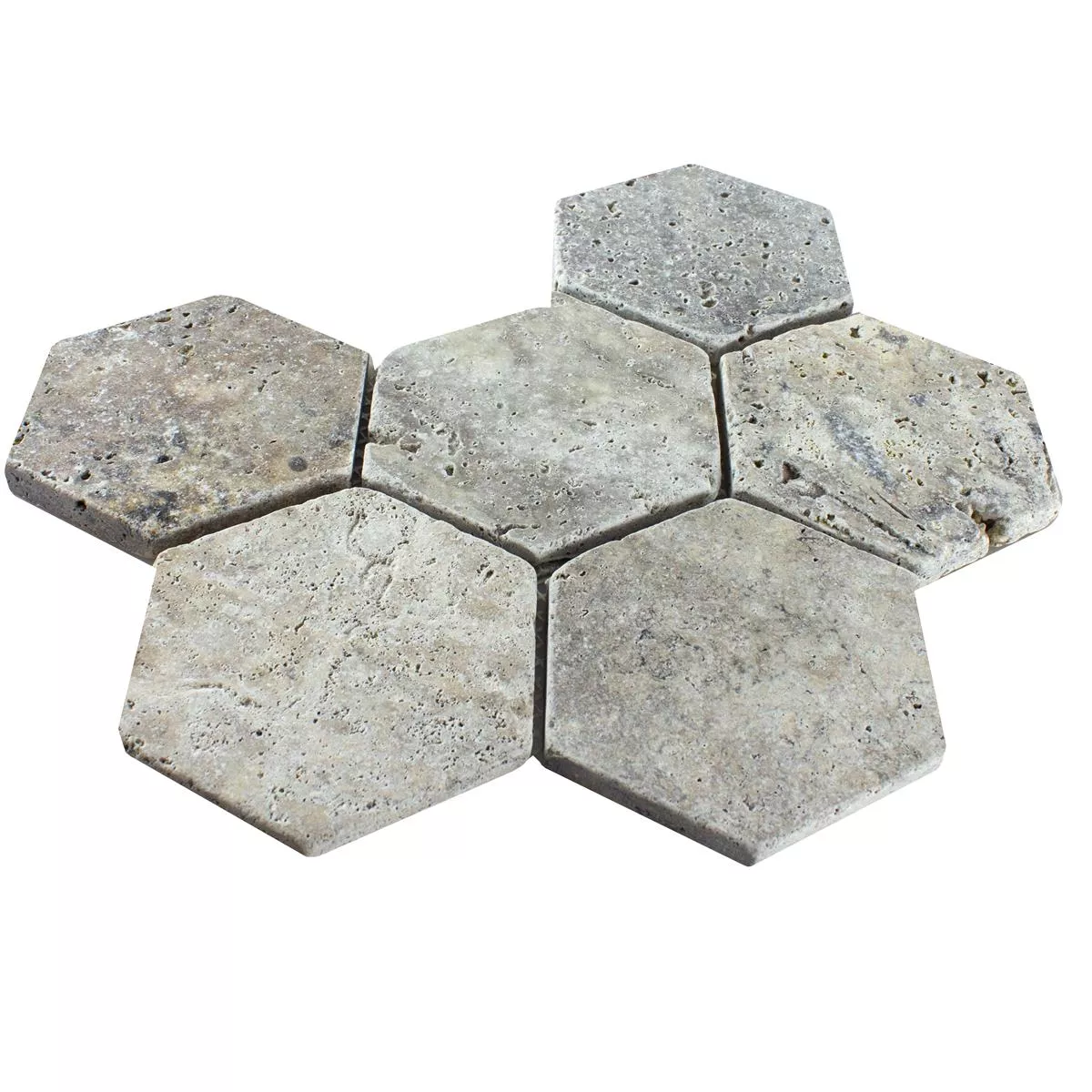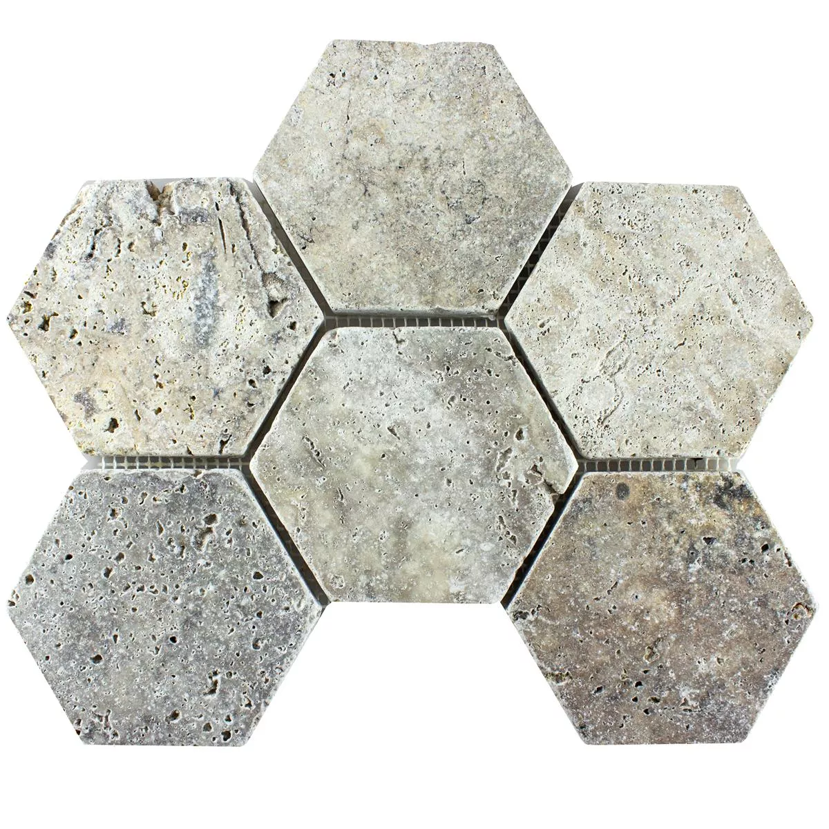 Travertin Natursten Mosaik Mercado Sexhörning Silver