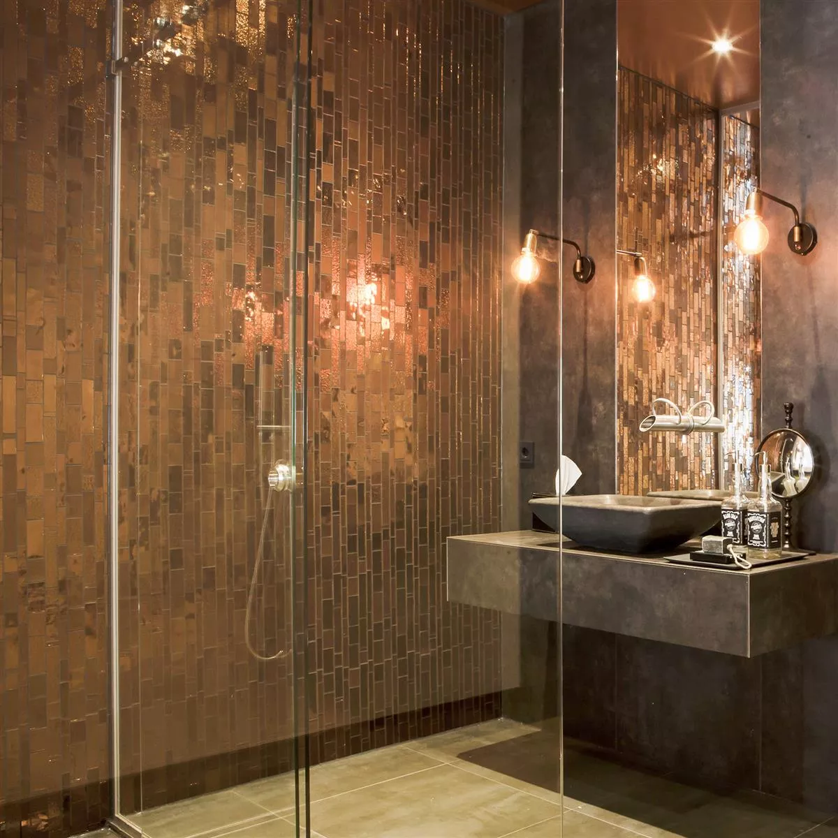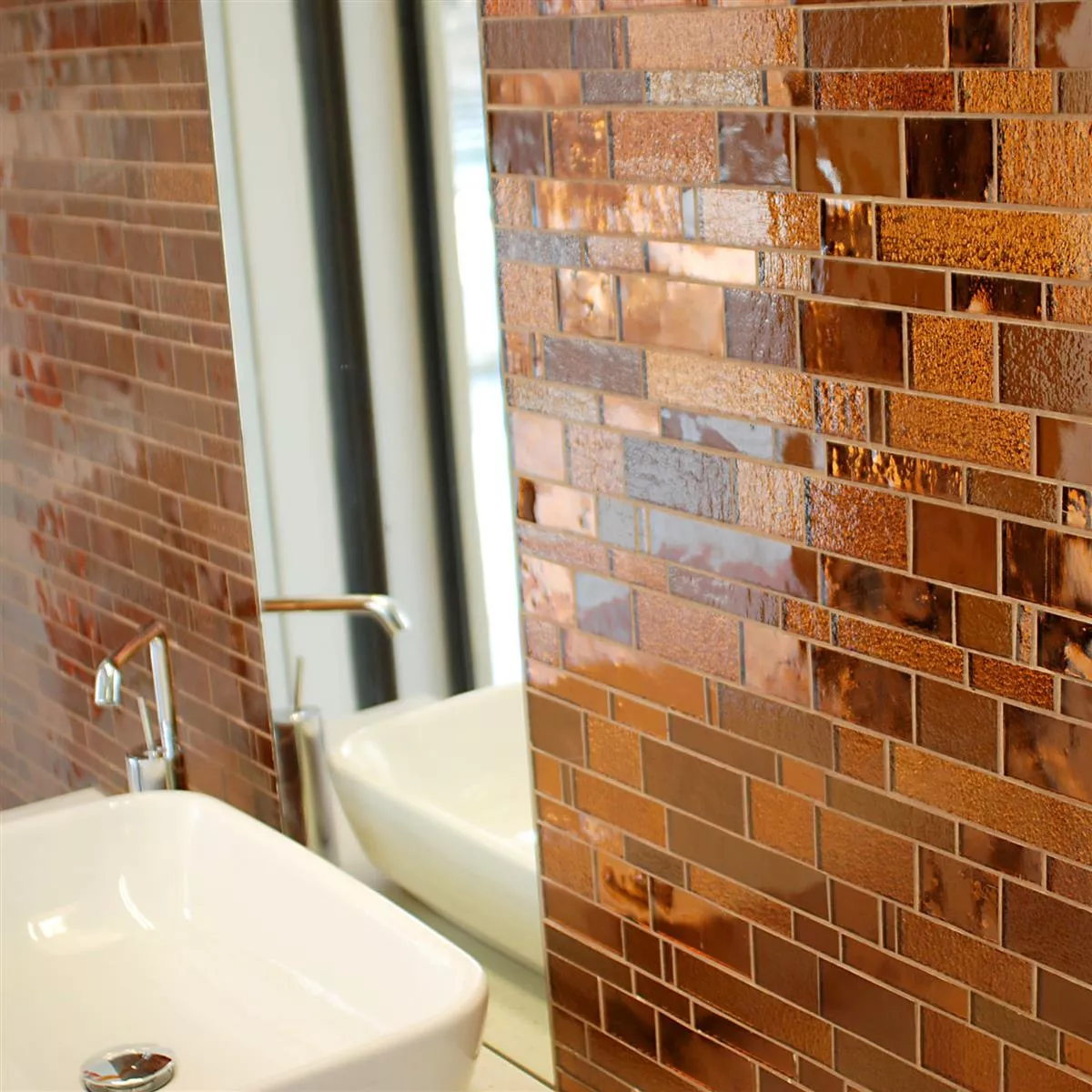 Om du värdesätter individuell stil, högkvalitativt material och en trendig look när du inreder ett vardagsrum bör du lära känna glasmosaikplattorna Metropolis i Amber. Denna glasmosaikplatta är gjord av den berömda och berömda italienska tillverkaren av glaskeramik, Trend-Vi-företaget. Golv som försetts med glasmosaik har ett särskilt elegant utseende men är lika lättskötta och motståndskraftiga som andra klinkergolv Mosaikplattorna finns som pinnar med en tjocklek på 4 mm, mattstorleken är 30,8x28. 8 cm.