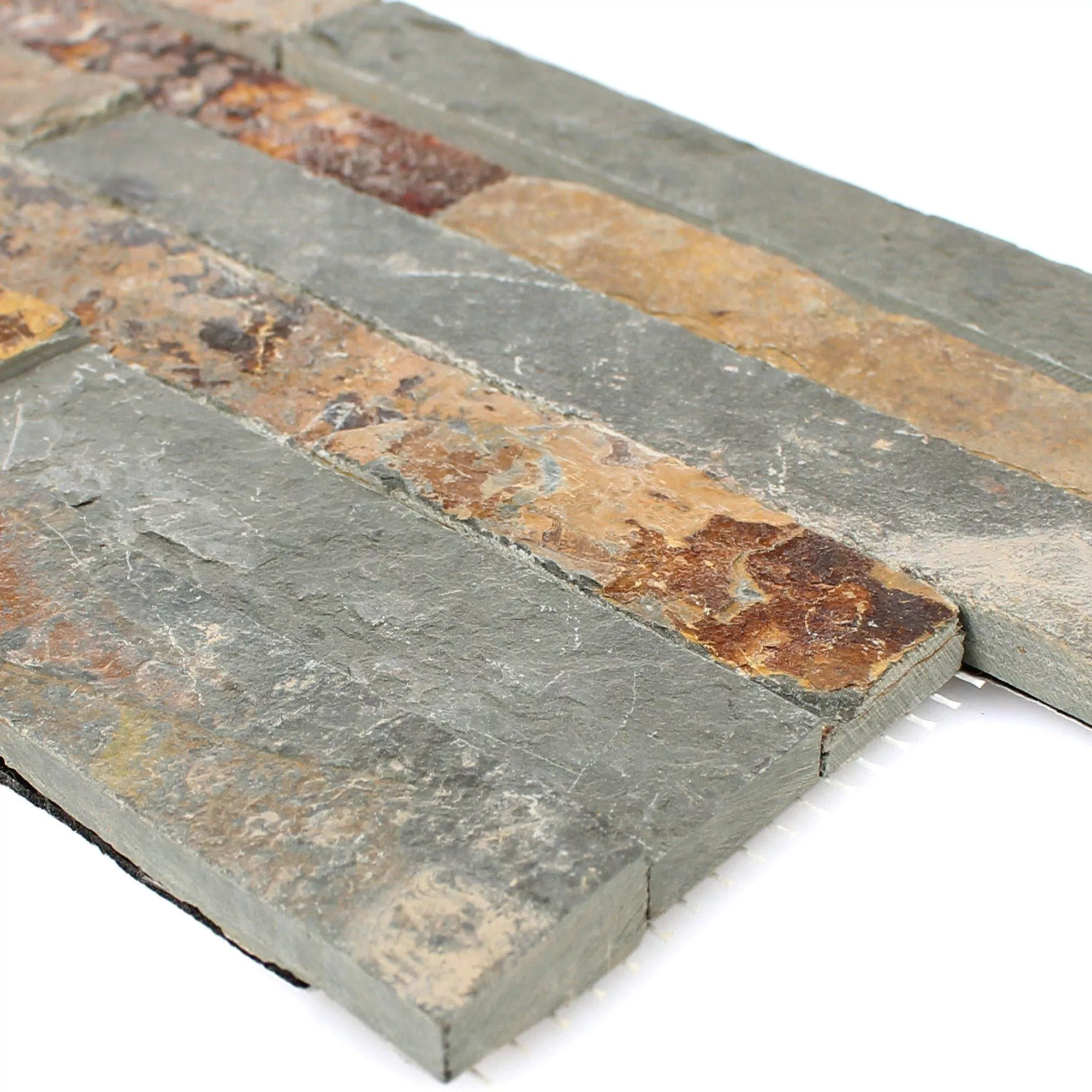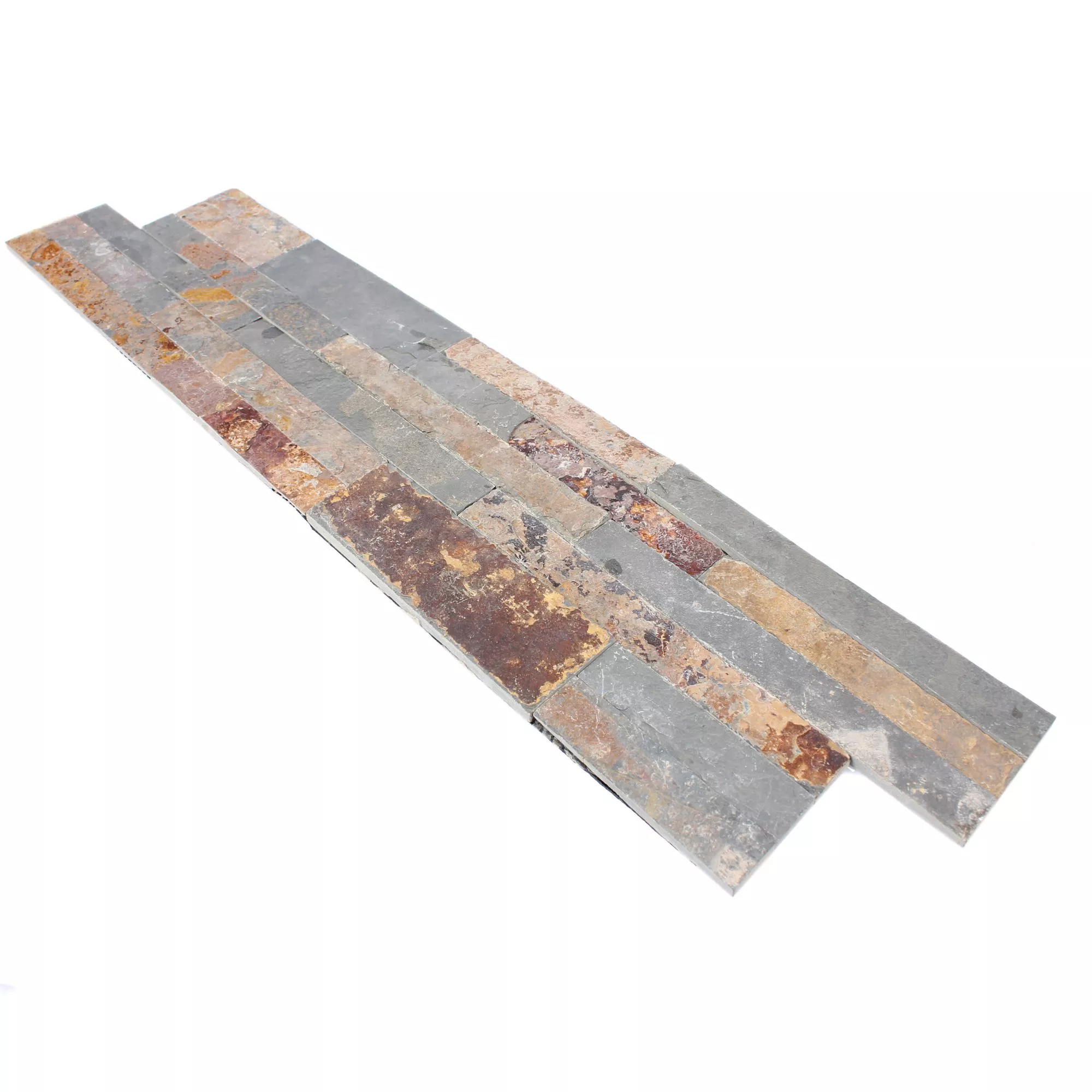 Väggplattorna "Belling" presenteras i ett elegant färgspel av guld, svart och brunt och erbjuder en snygg lösning för din väggdesign. Dessa väggplattor är gjorda av högkvalitativ skiffer och finns i både matt och texturerad finish. De självhäftande egenskaperna gör installationen mycket enklare och eliminerar behovet av komplext limningsarbete.
