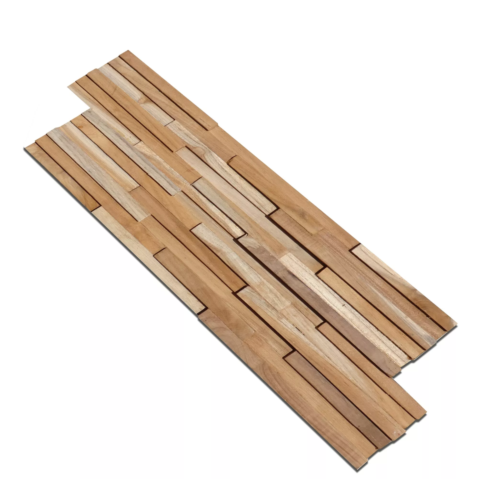 Väggpaneler Luxembourg Natura Slim träbeklädnader är individuella plattor som mäter 15 x 60 centimeter. Fasadteglet består av träpinnar som skapar en rustik väggbeklädnad. För hantverkaren skulle det vara jobbigt att bearbeta små träpinnar, varför pinnarna praktiskt taget sammanfogades på kakel. Detta gör arbetet enkelt. Materialets naturlighet kommer utmärkt till uttryck genom de olika träfibrerna och nyanserna. Moder natur fascinerar med olikheter. För tittaren visas den motstående tegelstenen i ett 3D-utseende.