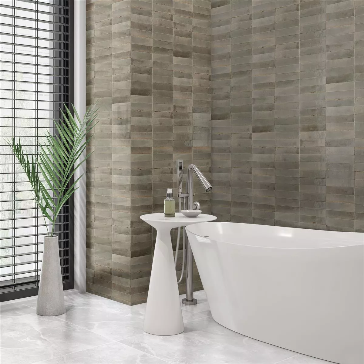 Wandfliesen Laguna Glänzend Gewellt Mokka 6x24cm