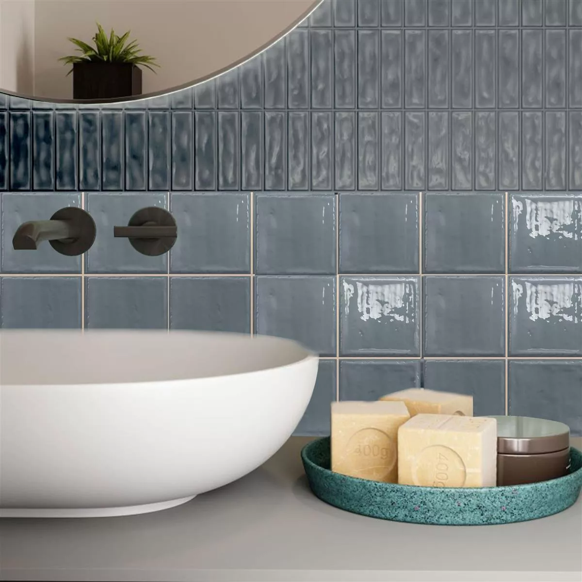 Wandfliesen Verbania Glänzend Gewellt Blau 20x20cm
