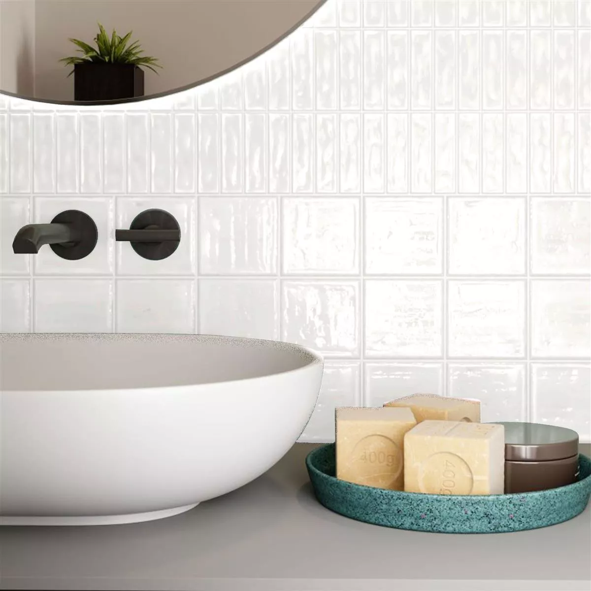 Wandfliesen Verbania Glänzend Gewellt Weiß 20x20cm