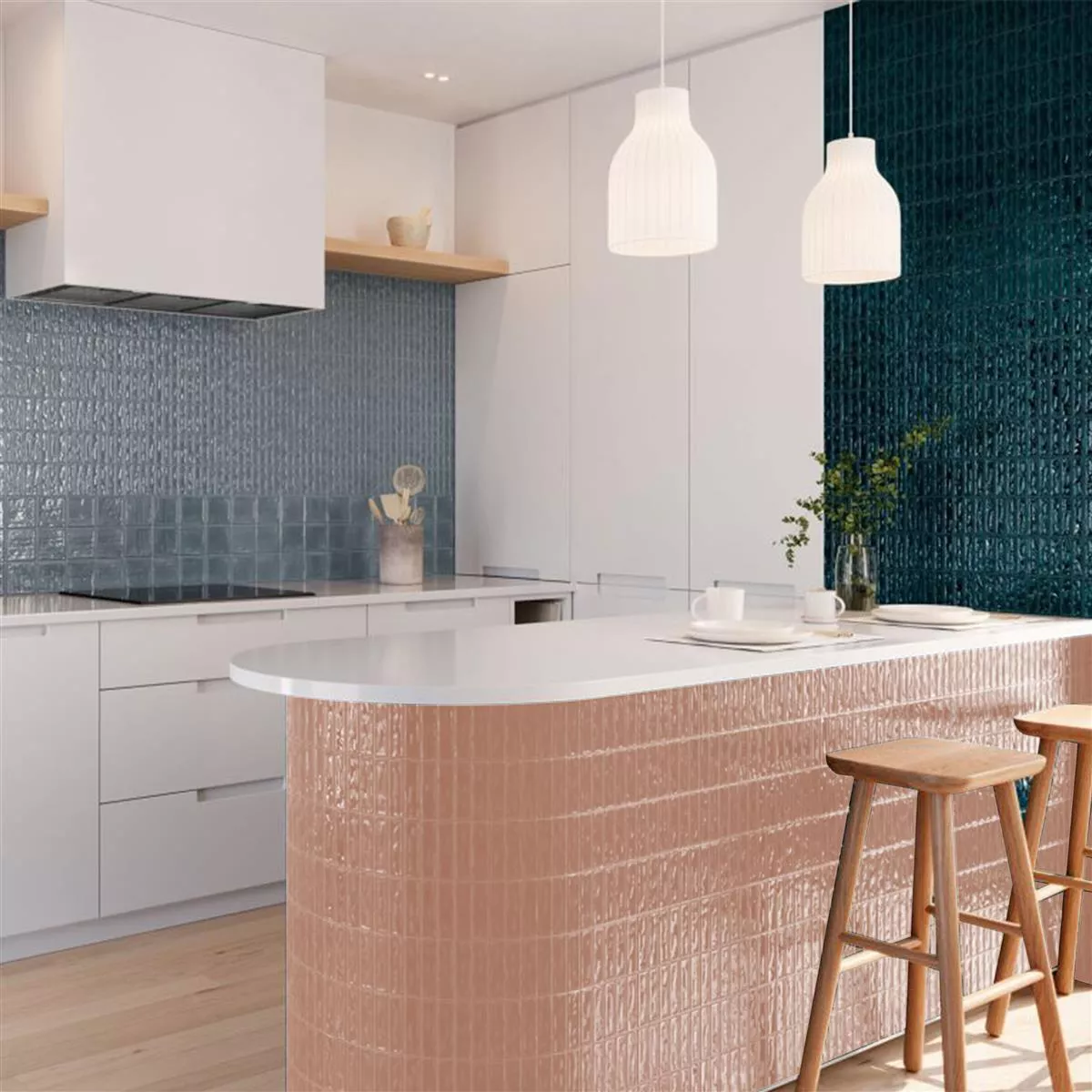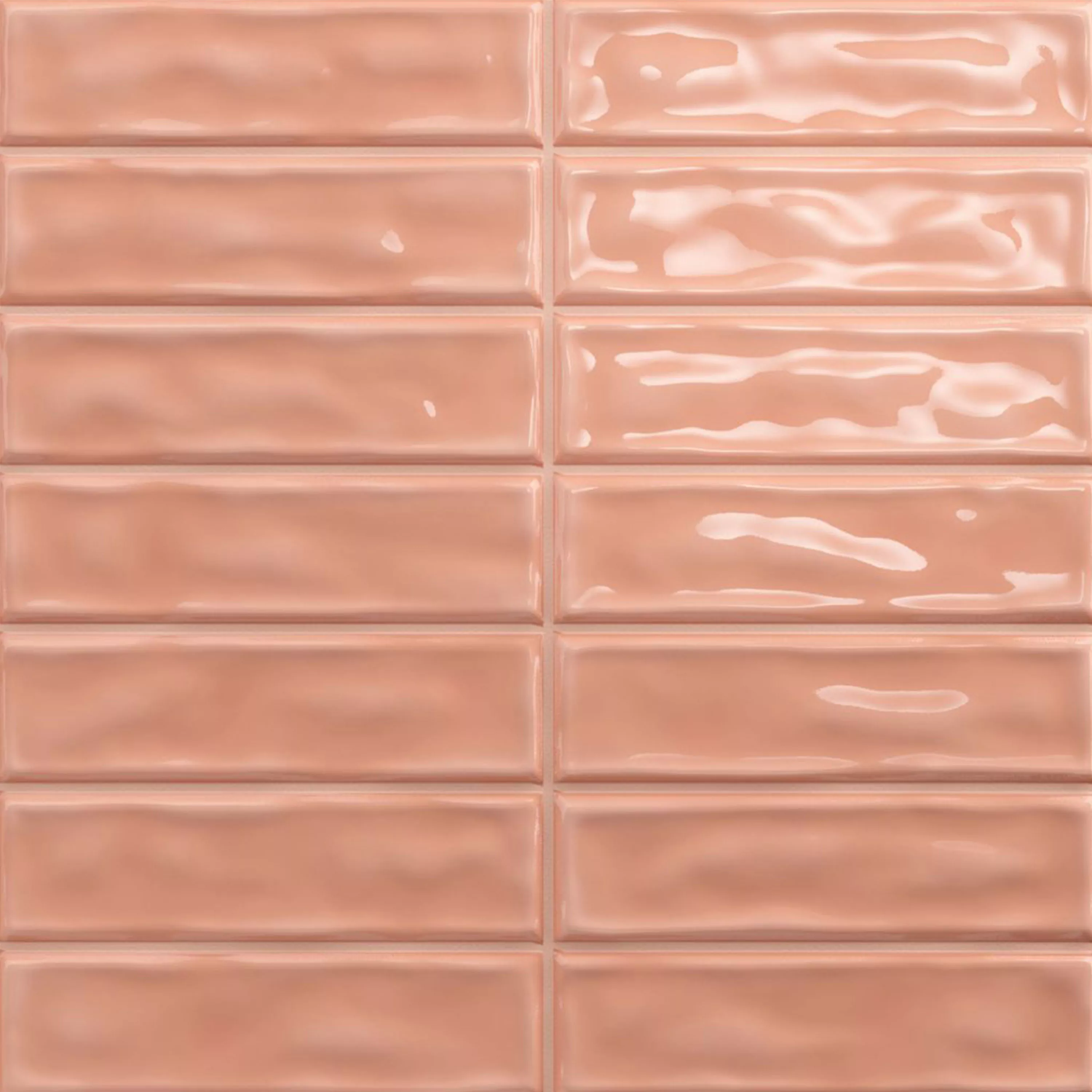 Wandfliesen Verbania Stäbchen Glänzend Gewellt Rosa 20x20cm