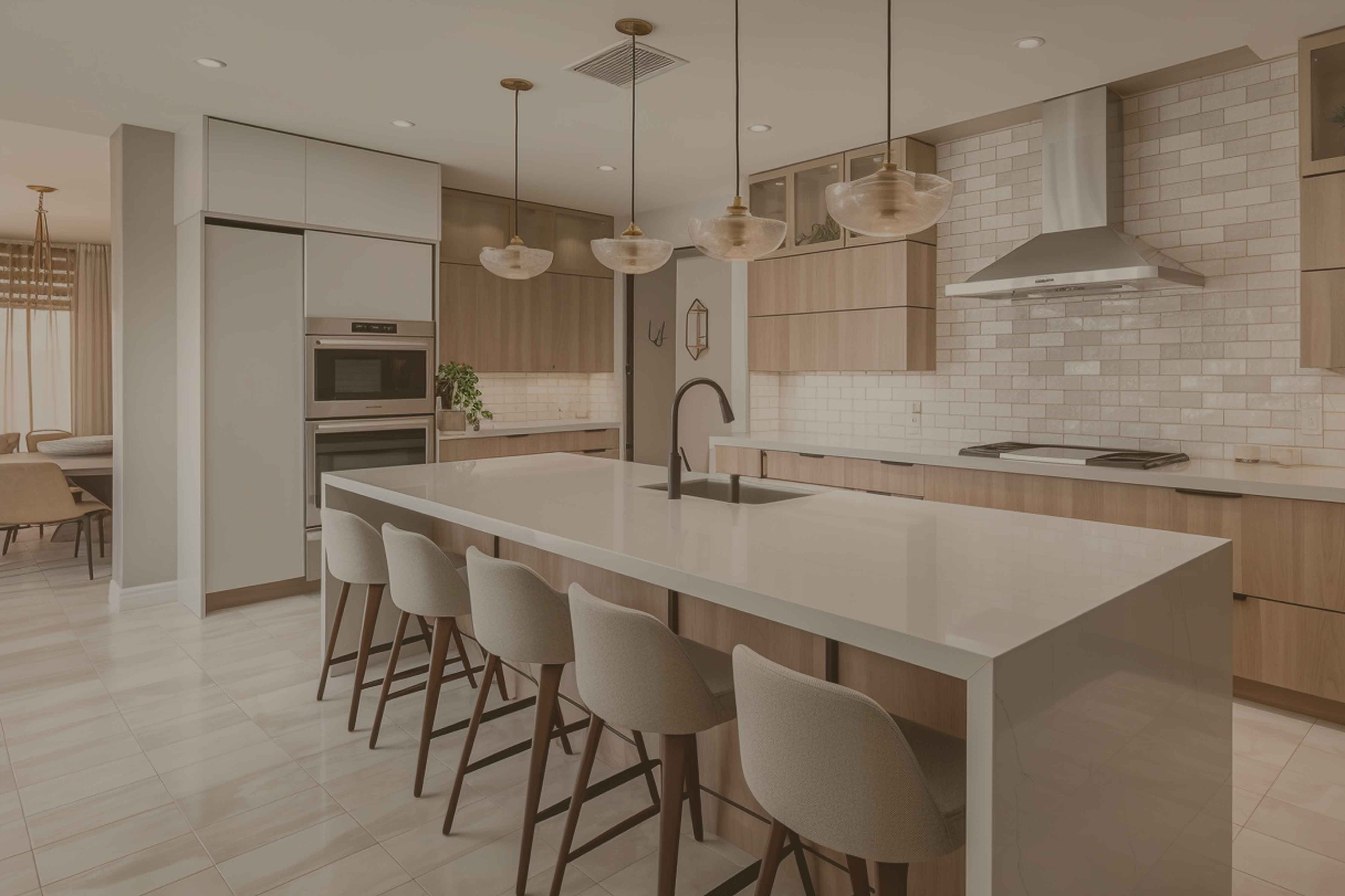 Große Wandfliesen verleihen der Küchendekoration ein beeindruckendes und modernes Aussehen. Diese Fliesen schaffen eine sauberere und geräumigere Wandfläche mit weniger Fugen. Bei der Verwendung von großen Wandfliesen in der Küche können Sie die folgenden Faktoren berücksichtigen: